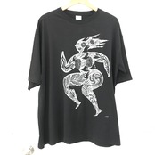 ブラックのビッグシルエットTシャツにグレーシルバーインクでバスッーー!と刷っています。