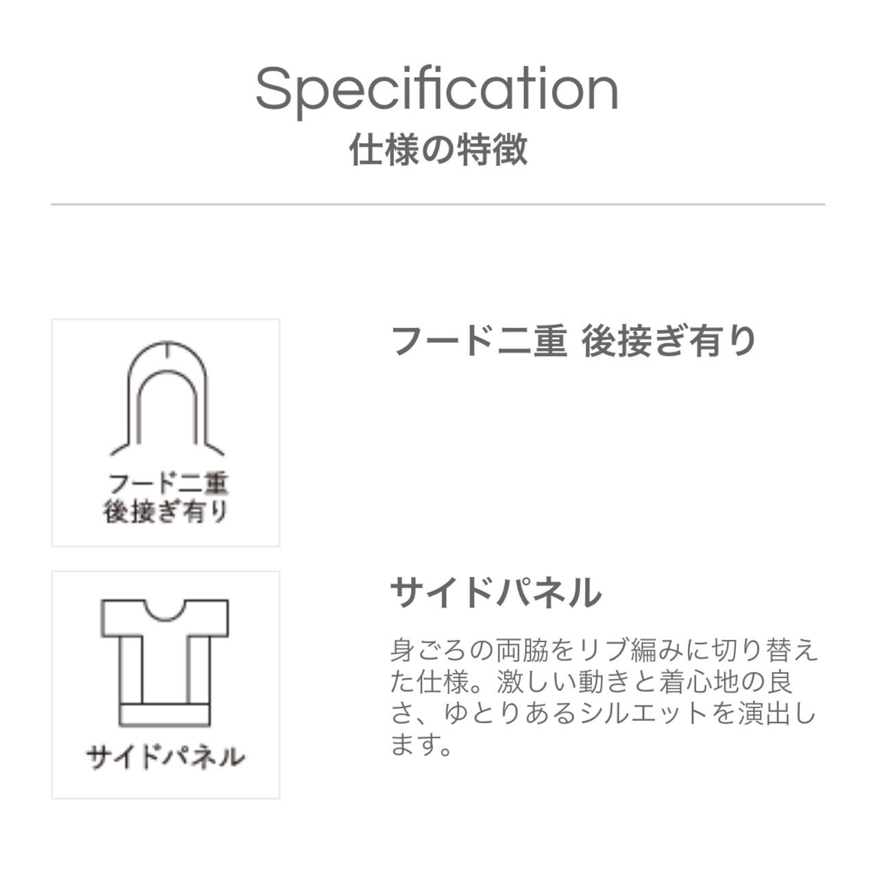 型崩れを防ぐリブ仕様のサイドパネルが美しいシルエットを生み出します。