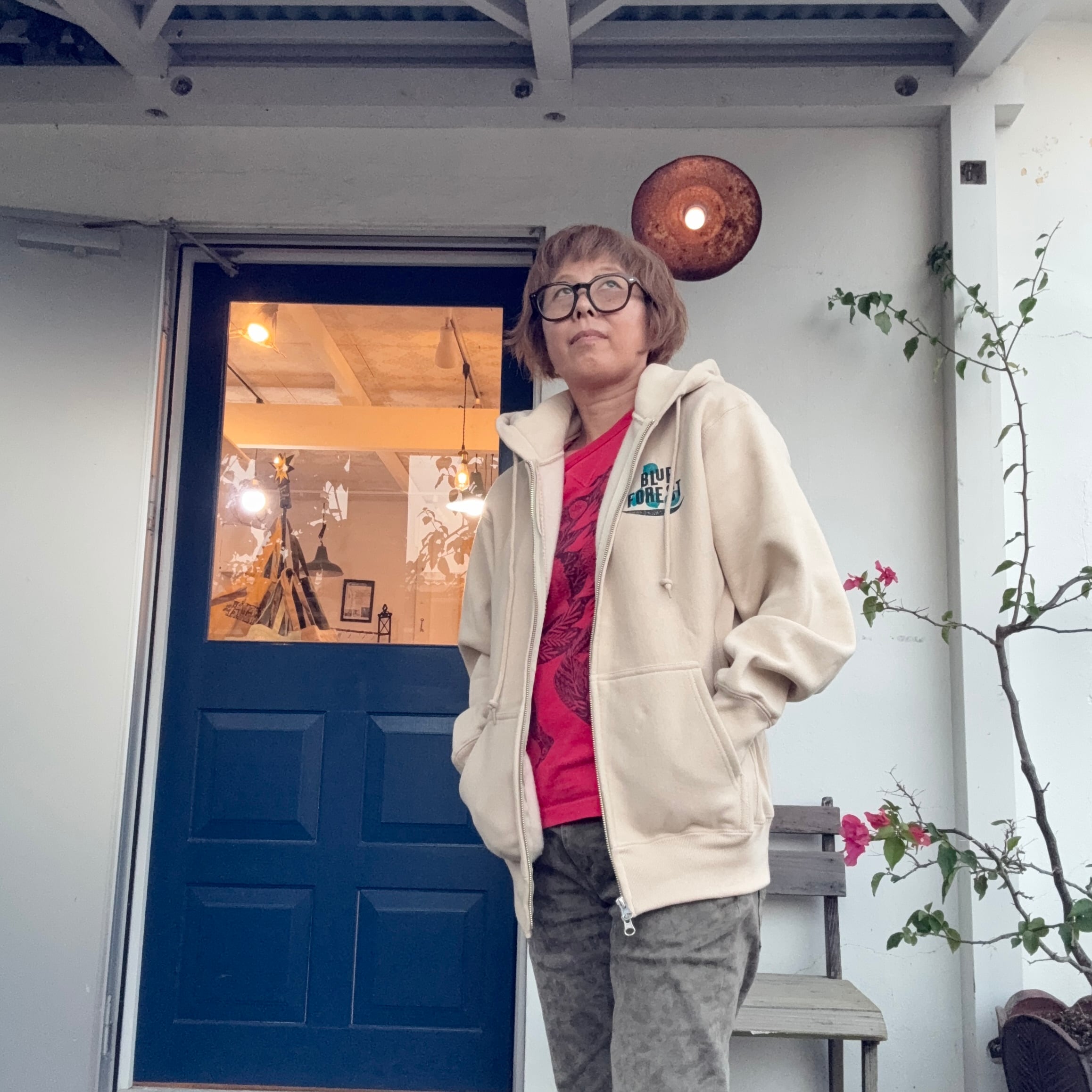 【Mサイズ】袖は伸ばすと指先が少し出る。丈は腰を隠してお尻半分くらいまでくる。すべてにちょうどいいサイズ感。ジップアップでコンパクトにも、軽く羽織ってラフにも。