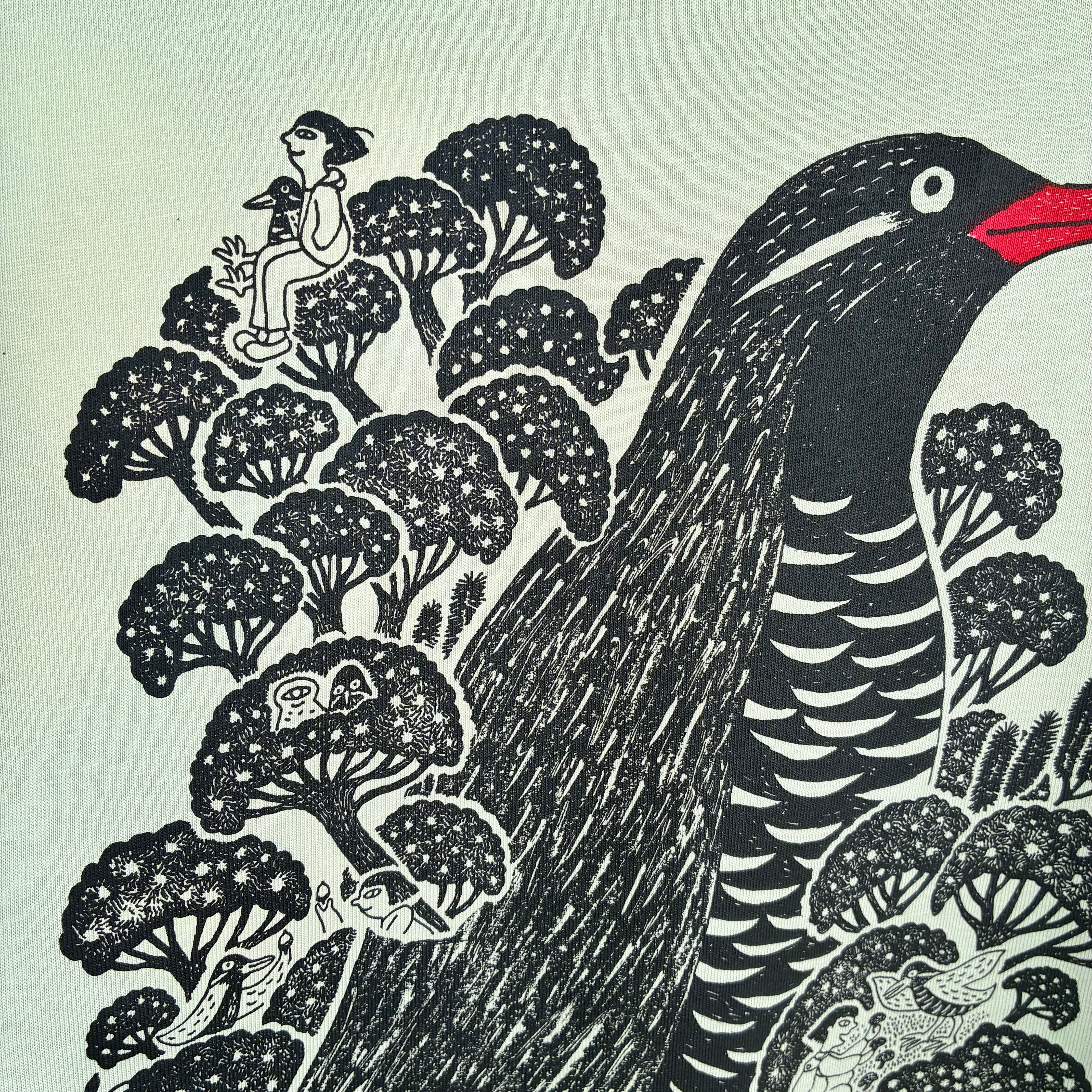 沖縄ヤンバルの森にひそむヤンバルクイナと森の物語を描いたTシャツです。ミツの中にある森の物語もたくさん入っています。ブロッコリーのようなヤンバルの森の中で一度だけ見たヤンバルクイナ。愛らしかった!森の中には泉、どんぐり、キノコとの出会いなど、どれもミツと森との思い出の物語をクイナちゃんと一緒に描きました。