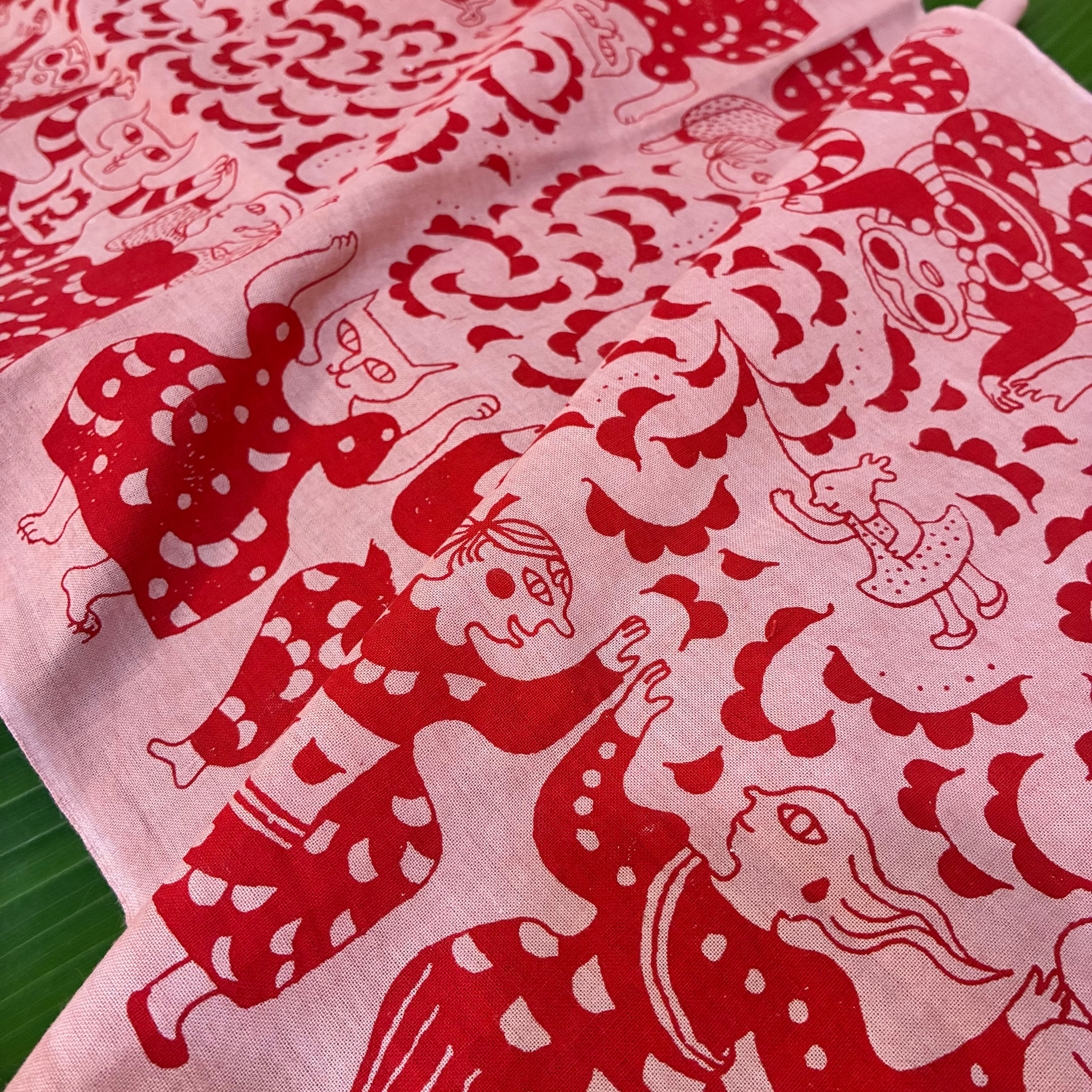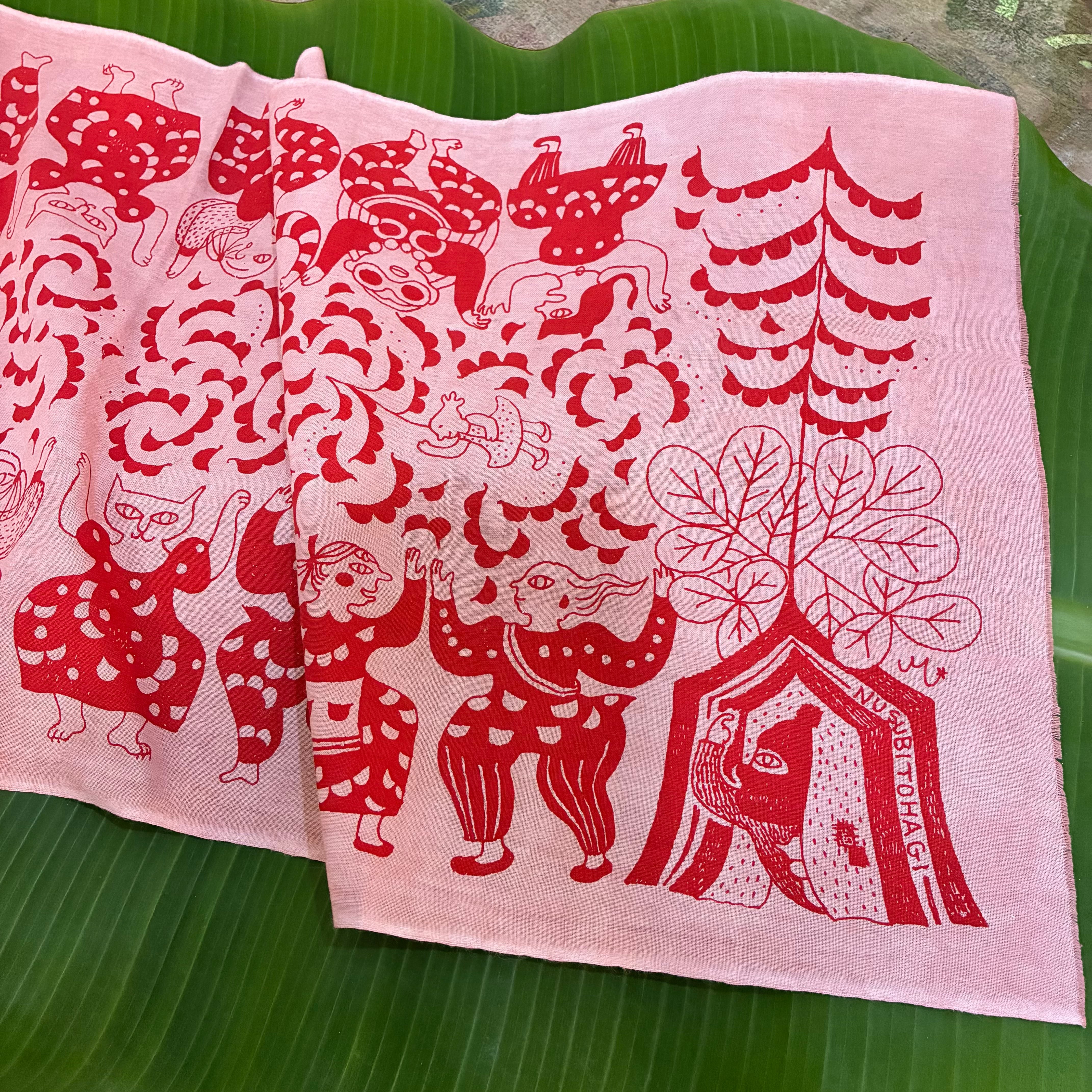 【ベンガラ染め手ぬぐい/茜】ヌスヒトハギのダンス